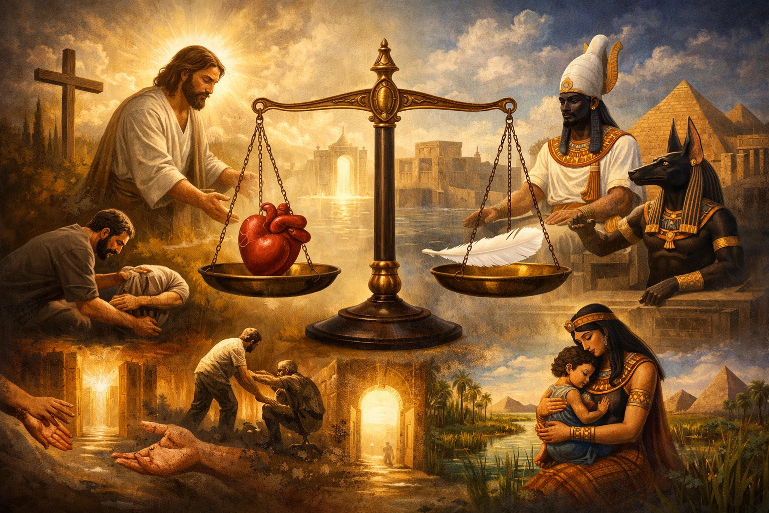 That’s one way Christianity and Egyptian mythology share virtues and ethics: both treat compassion as a mark of the good life.
