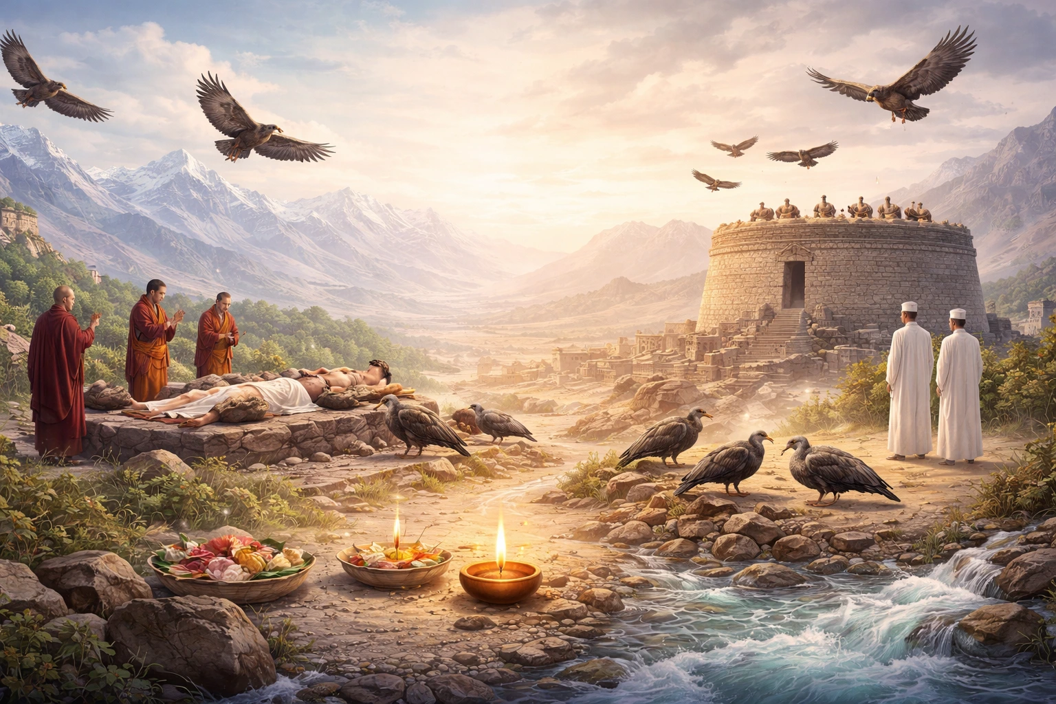 Sky Burials: The Sacred Logic Behind Tibetan Jhator and Zoroastrian Dakhma